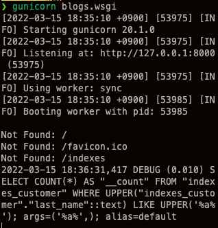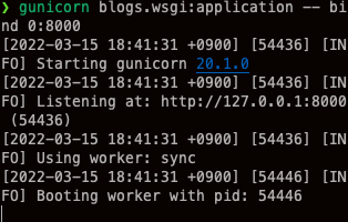 그리고 아래 명령어를 입력하여 Gunicorn에서 Django를 실행합니다.