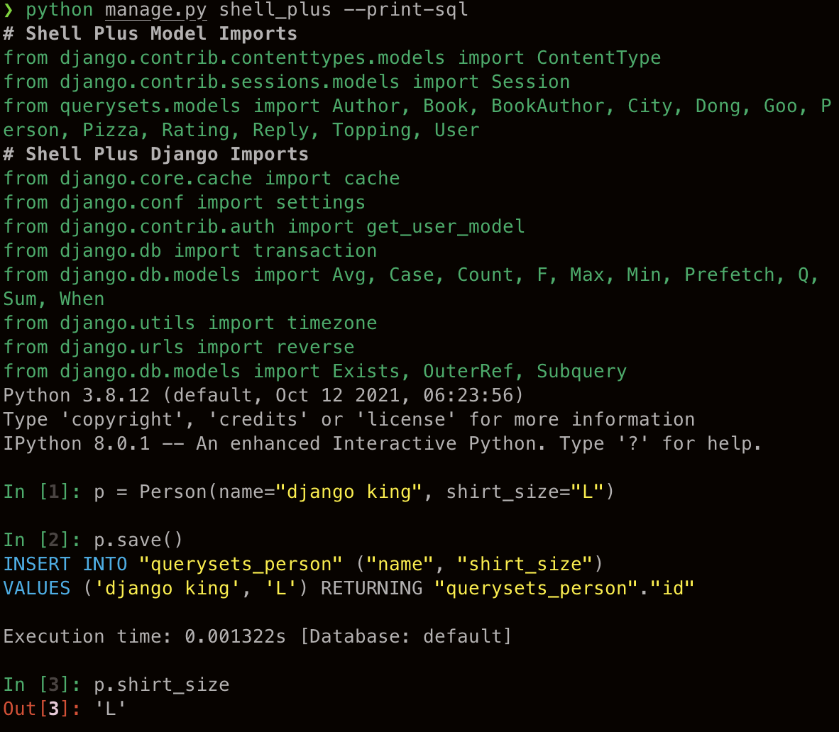 p라는 변수에 name="django king", shirt_size="L"인 데이터를 하나 만들었습니다.