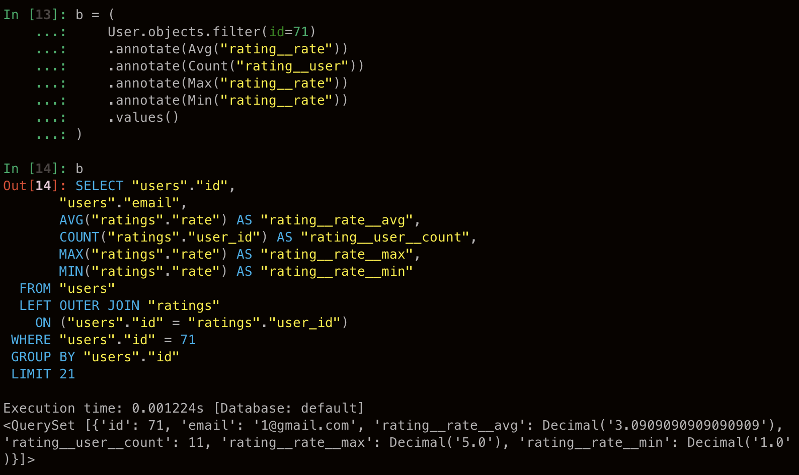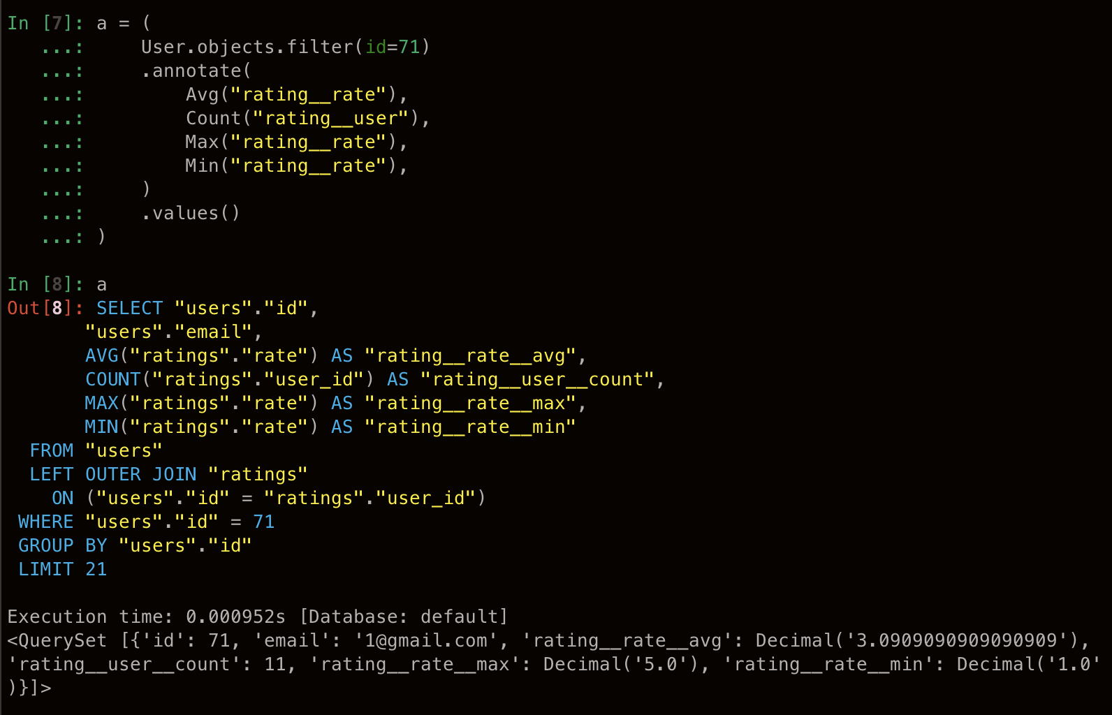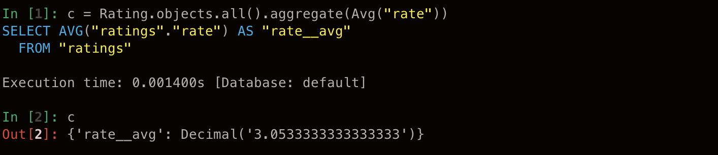 책의 ID가 602번인 책의 평균을 리턴된 QuerySet에 넣어서 함께 받기 위해 annotate를 사용했습니다.